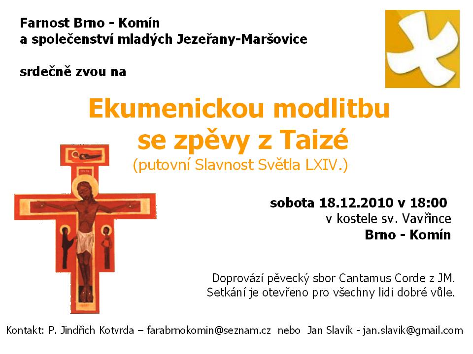 Už se stalo pěknou tradicí, že společně s Evangelickou církví AV Brno se uskutečnila Adventní ekumenická modlitba v Brně, v sobotu 19.12.2009 ve 20:00 na novém místě - v kostele Nanebevzetí Panny Marie, tzv. U jezuitů. Více info v přiložené pozvánce.